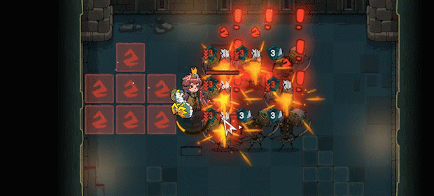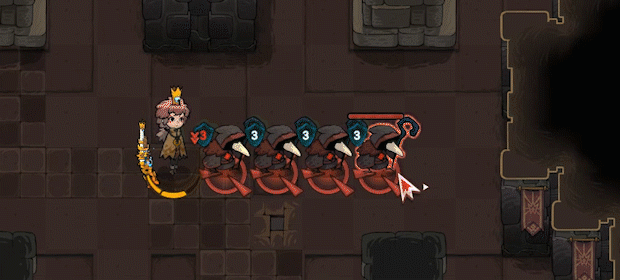 O labirinto gerado dinamicamente garante-te uma experiência diferente sempre que entras na masmorra. Porém, ao contrário dos mapas abertos tradicionais, Crown Trick tranca-te no interior de uma pequena sala de masmorra para lutares contra monstros. Sem acesso ao mapa todo, só te resta preparar estrategicamente o teu ataque ao inimigo.