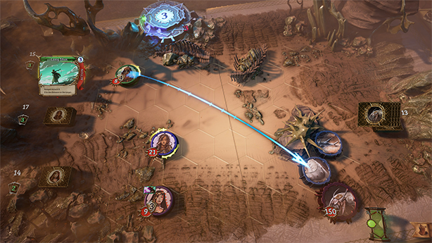 A combinação de 3 baralhos de heróis apresenta novos e interessantes desafios em cada luta.